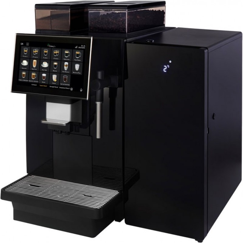 Повністю автоматична кавова машина, обладнана сенсорним дисплеєм .Тип кави - зернова.Місткість контейнера для кави - 1200 г.Об'єм контейнера для води – 4 л.Об'єм контейнера для жмиху - 70 порцій.Напруга 220-240 V, 50/60 Гц.Потужність 2700 Вт - 3100 Вт.Розміри: 340x620x545 мм .Колір – чорний.Матеріал корпусу - пластик.Вага нетто 25 кг.Виробник: Suzhou Dr.Coffee System Technology Co., LtdХолодильник для молока, опція-придбати можна окремо